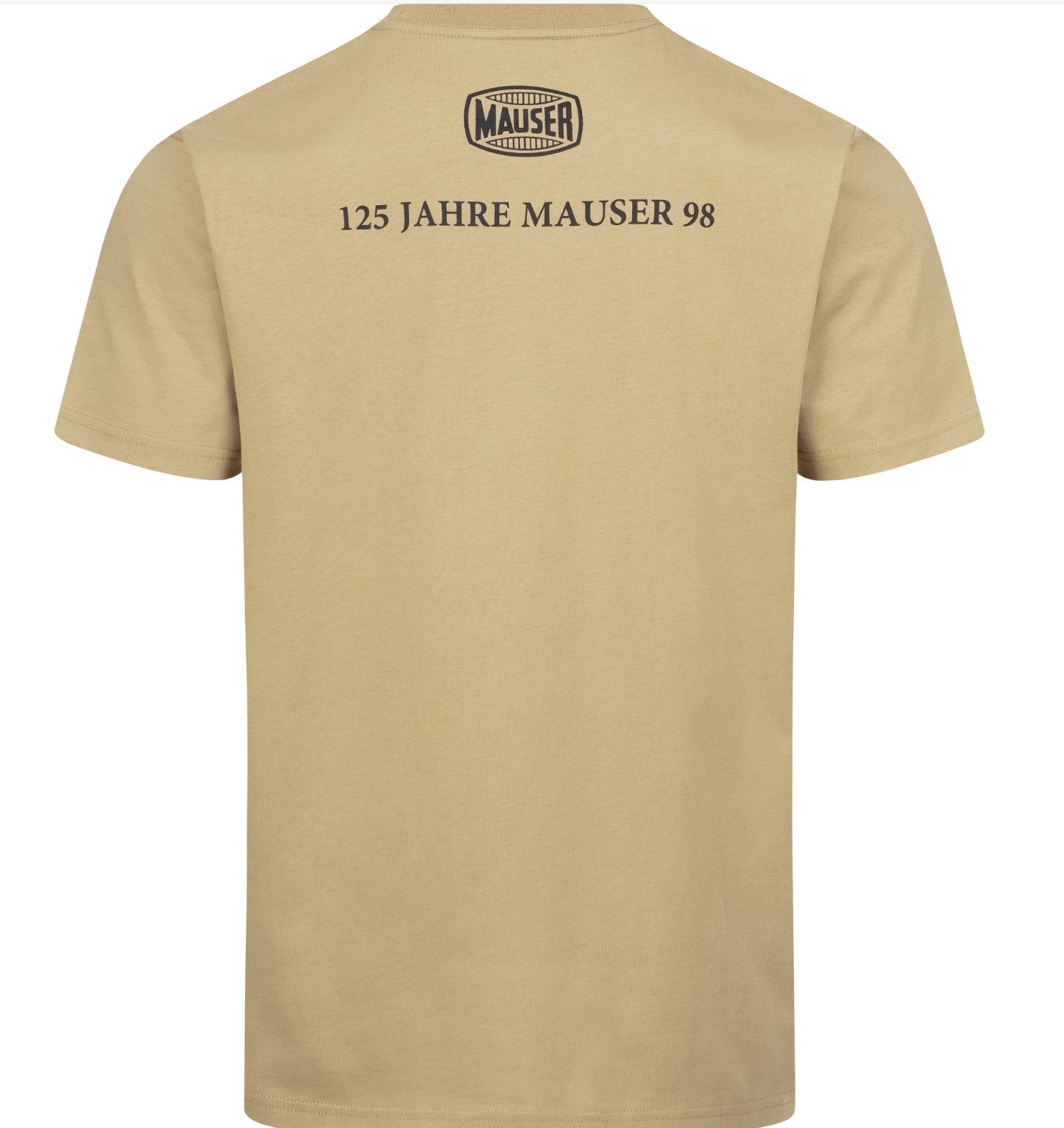 MAUSER 98の125周年を記念してデザインされた、ブランドの歴史と誇りを象徴する限定Tシャツです。フロントには大胆な「98」のプリント、バックには控えめながらも印象的な「125 years of MAUSER 98」のロゴが施されています。