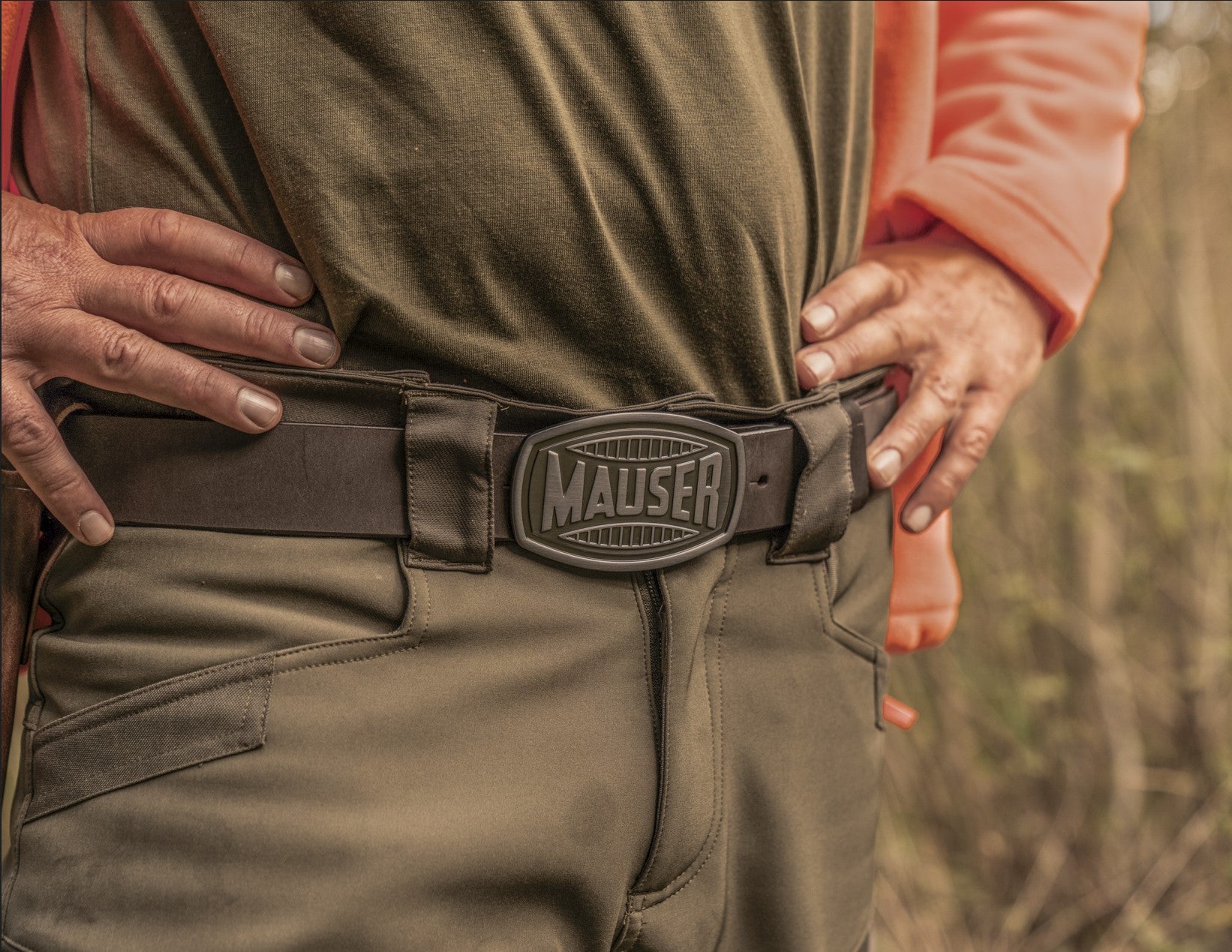 ブランドの象徴を纏う:フロントに施されたMAUSERのロゴバッジが、ブランドの歴史と誇りを際立たせます。